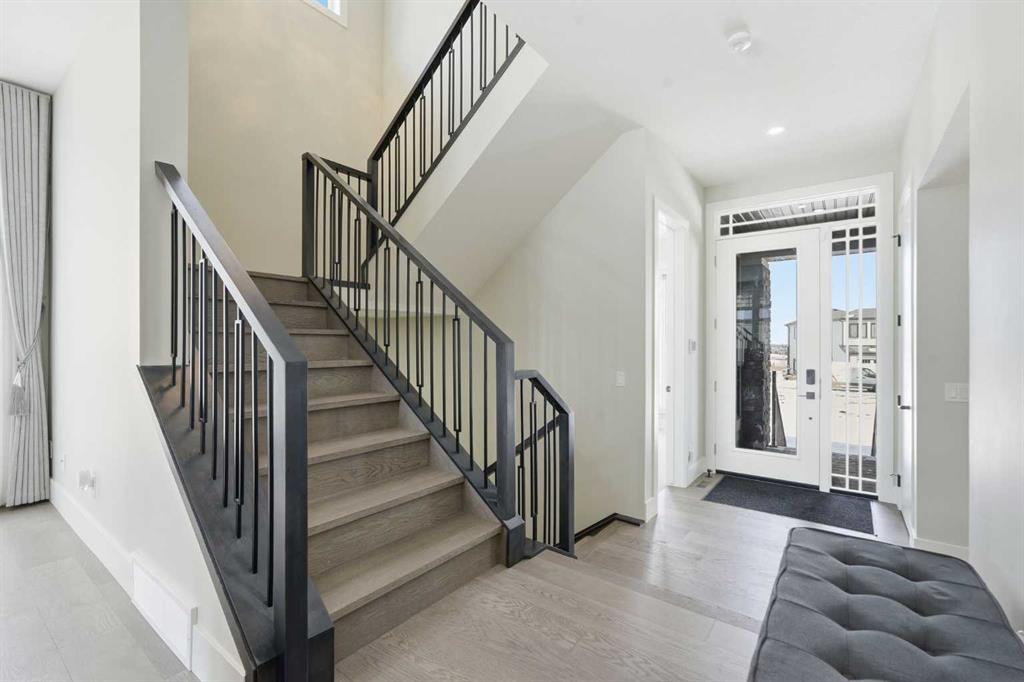 Discover your dream home in this 2025 build Foursquare style design, blending timeless character with a practical layout, thoughtful details, and PARK-FRONT Living! Located in one of Calgary's newest community, Alpine Park, this home features a symmetrical design, 5 BEDROOMS and a welcoming covered front porch, making it a perfect spot to relax while watching the kids play in the front park. With over 3,500 sf of finished space, this layout is both functional and beautiful. The exterior is finished with HARDIE BOARD siding and brick, while inside, warm hardwood floors, and elevated ceilings bring comfort and style together. The kitchen is fitted with quartz counters, a spacious potential walk-through pantry, stainless steel appliances including a GAS RANGE & built in oven, it flows seamlessly into the living room featuring expansive windows allowing the space to fill with natural light, highlighted by a stunning brick wall and gas fireplace. The semi-formal dining room with 10' ceilings makes for a more intimate overall dining experience with family/friends. Rounding out the main floor is the stunning office/flex room with four large windows with great views of the park. Upstairs offers three generously sized bedrooms, and a bonus room - for gathering or retreat. The primary suite is a standout, complete with a freestanding tub, large tile shower, double vanities. It also features an impressive walk-in closet, and a thoughtful layout that adds everyday ease and flow. The fully finished basement expands the living space with two additional spacious bedrooms, 4pc bathroom, and a rec/media room. Additional highlights include a side covered porch w/ bbq gas line, REAR ATTACHED DOUBLE GARAGE, and the Alberta New Home Warranty. Plus easy access to the mountains, via Stoney trail, and just minutes from Costco, shopping, parks, schools, dining, and scenic walking paths!